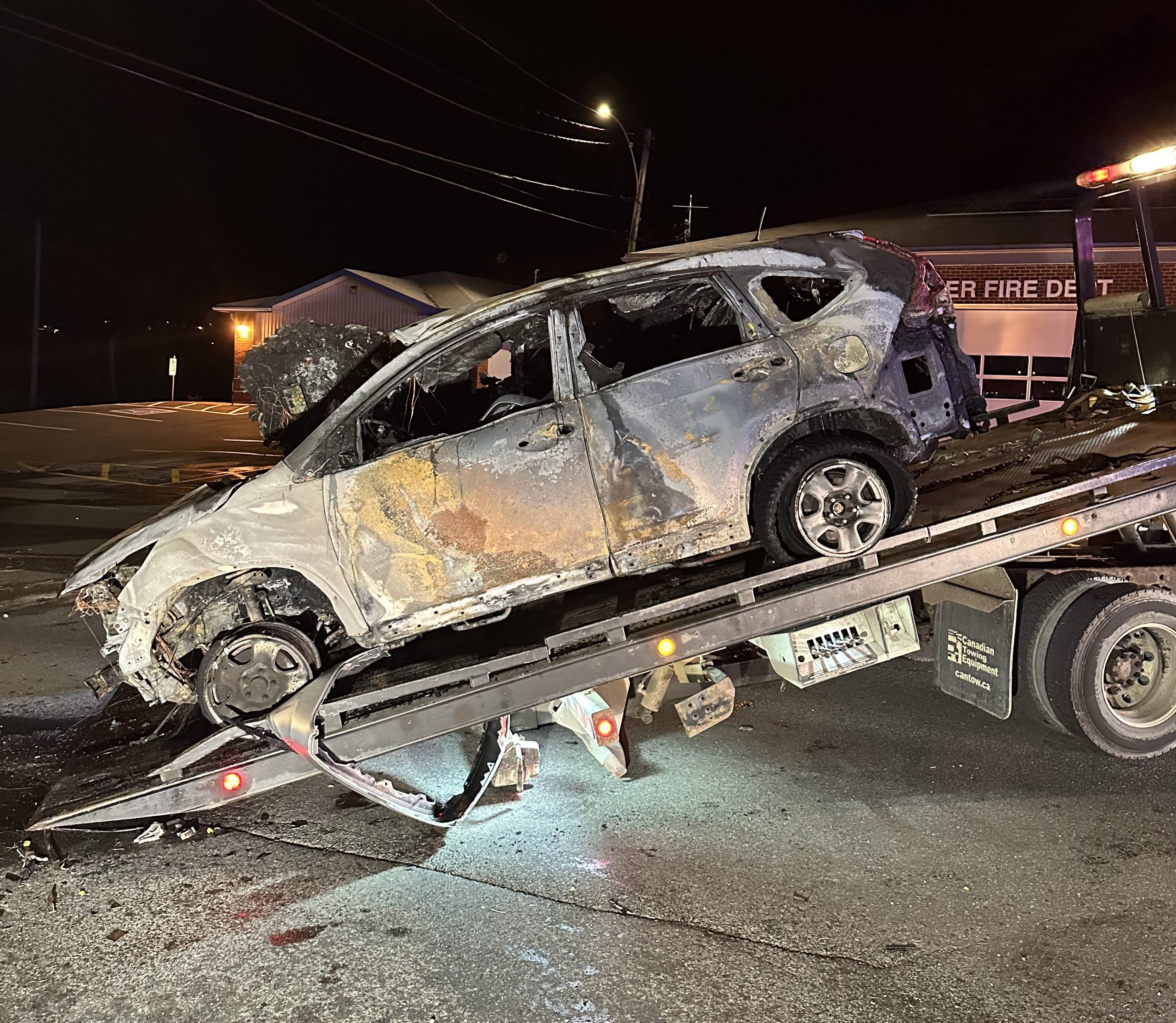 On Thursday (August 8) just after 11 p.m., Operational Patrol Services responded to a report of a single-vehicle rollover on Torbay Road, near the Town Hall, in Torbay. The SUV involved was engulfed in flames on the roadway and being suppressed by firefighters. The operator of the vehicle was located nearby after being removed from the burning vehicle by another motorist who was travelling in the area. The driver had minor physical injuries and was transported to the hospital to receive medical treatment.