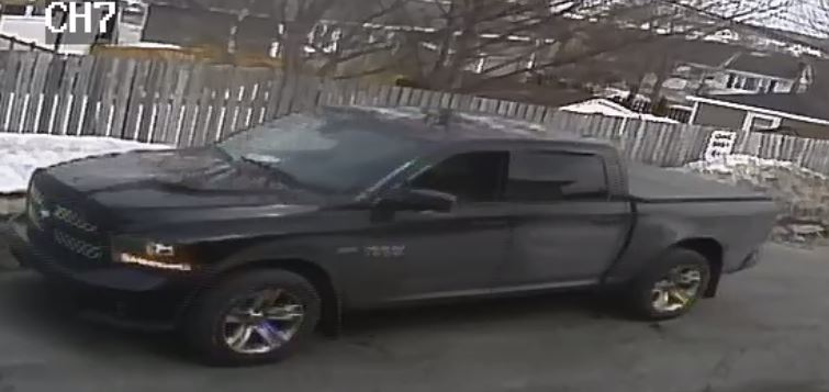 After reviewing CCTV footage at a nearby business, the suspect was seen exiting a black Dodge RAM 1500 pickup truck in the Fall River Plaza parking lot on Torbay Road, and can be seen returning to the vehicle following the incident. The suspect is a man wearing a blue mask over his face, with a grey hoodie, blue jeans and blue sneakers.